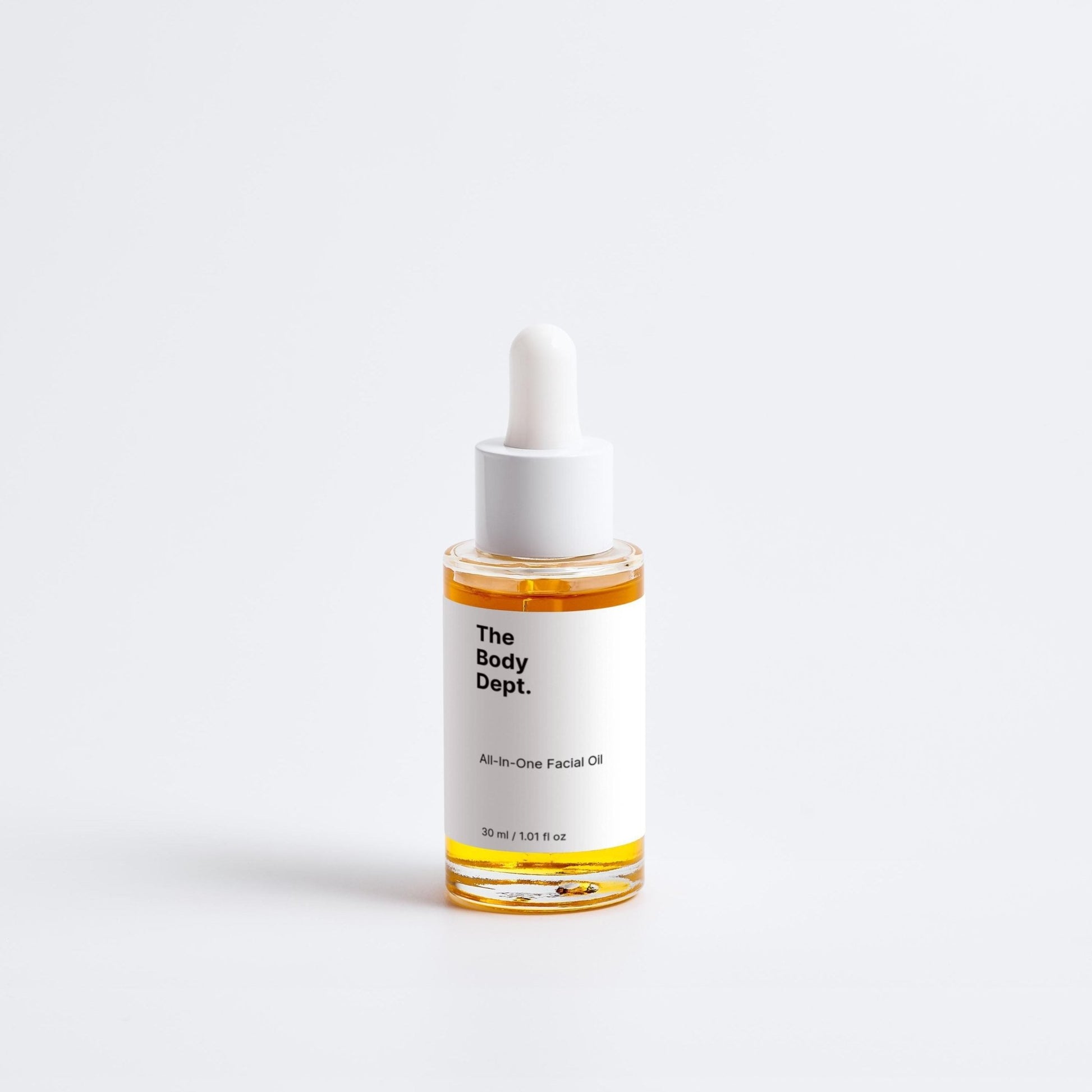 All-in-one facial oil: Jojoba Seed Oil, Avocado Oil, Almond Oil, Evening Primrose Oil, Sea-Buckthorn Oil, Raspberry Seed Oil
